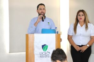 Los Cabos, B.C.S., 21 noviembre 2022.- Con la finalidad de garantizar la comunicación directa entre autoridades de la XIV Administración y la comunidad estudiantil, para asegurar que se atiendan las necesidades y peticiones que este sector presenta, se realizó un panel interactivo denominado “Conociendo a los Servidores Públicos de mi Municipio”, en el Colegio Liceo de Cabo San Lucas, donde se contó con la participación del delegado Raymundo Zamora Ceseña, y la presidenta honoraria del Sistema DIF delegacional, Rosa González González, quienes explicaron a estudiantes de nivel preparatoria de que manera ejercen como autoridad y las acciones para lograr una atención pública con sentido humano.