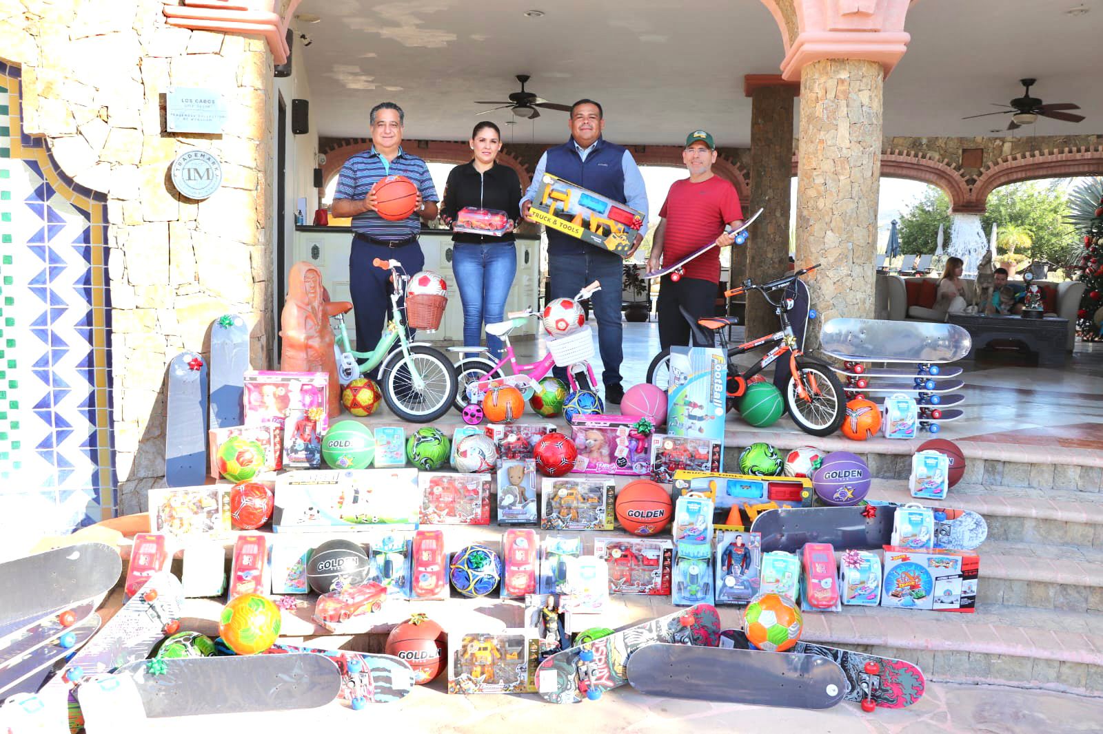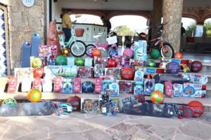Los Cabos, B.C.S., 29 diciembre 2022.- En respuesta a la convocatoria que efectuó el presidente municipal Oscar Leggs Castro de apoyar con juguetes a la niñez en estado de vulnerabilidad, integrantes de la iniciativa privada entregaron al delegado municipal Raymundo Zamora Ceseña y a la presidenta honoraria del SMDIF en Cabo San Lucas Rosa González González, la donación de 150 juguetes para niñas y niños que anhelan recibir un obsequio en esta temporada.