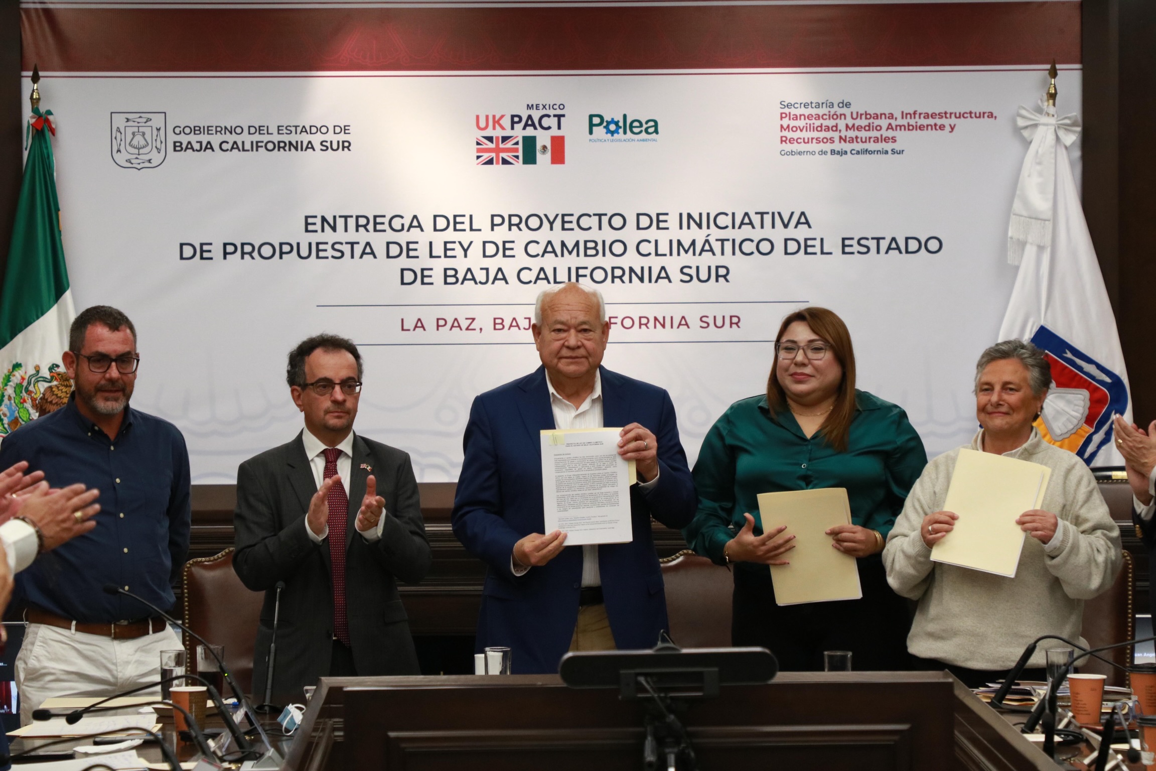 Acompañado por el embajador del Reino Unido, Jon Benjamin, por diputados de la actual legislatura, por la alcaldesa de La Paz, Milena Quiroga y representantes de Los Cabos, Comondú, Loreto y Mulegé, así como académicos y de funcionarios federales y estatales, el mandatario sudcaliforniano escuchó un recuento del proceso y la presentación de resultados, así como la entrega de la iniciativa.