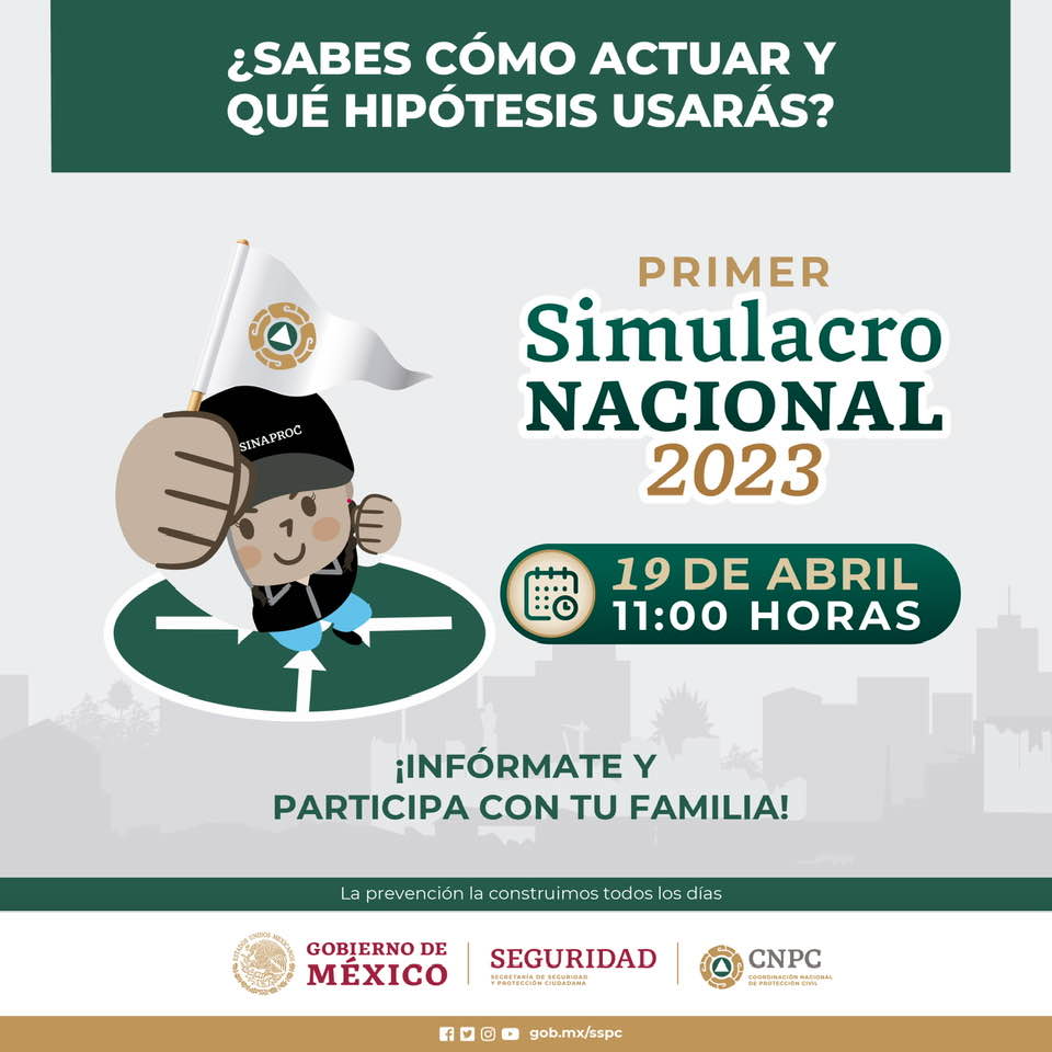 Con la finalidad de fortalecer la cultura de la prevención, el Gobierno del Estado a través de la Subsecretaría de Protección Civil, convoca a los sectores público y privado, así como a la población en general, a participar en el Primer Simulacro Nacional 2023, que se realizará el día miércoles 19 de abril, a las 10:00 horas del Pacífico, dio a conocer el secretario general de Gobierno, Homero Davis Castro.