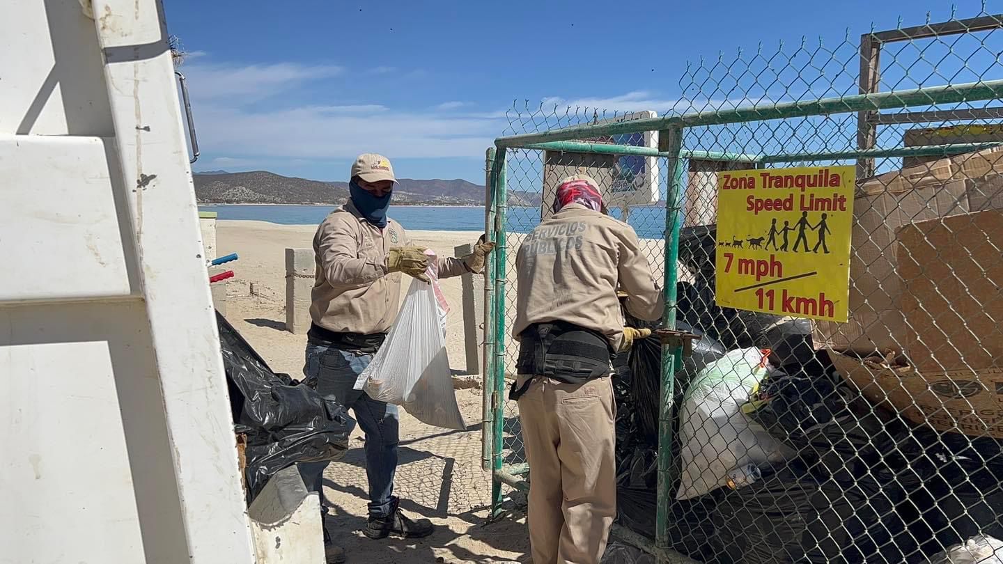 Los Cabos, B.C.S., 14 abril 2023.- Con la finaliad de manetener limpias las playas de Los Cabos, personal de la Dirección General de Servicios Públicos que encabeza Leonel Leyva Luna, realizó de manera constante recorridos por todas las playas para retirar la basura acumulada por los visitantes durante la Semana Santa, fecha en la que más gente se aglomera en las playas.