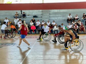 Los Cabos, B.C.S., 06 de julio 2023.- Como parte de un ejercicio de sensibilización e inclusión deportiva, se llevó a cabo el encuentro entre el equipo profesional de basquetbol Choyeros y el equipo del Instituto Municipal para el Desarrollo e Inclusión de Personas con Discapacidad de Los Cabos (IMDIS), conformado por personas con discapacidad que logró imponerse 24 a 16 en el auditorio “Fernando I. Cota Sandez” de San José del Cabo.