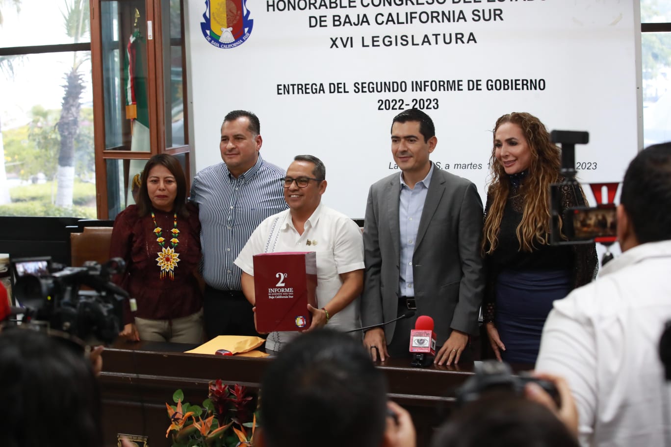 El secretario General de Gobierno, José Saúl González Núñez, entregó a la Comisión del Congreso del Estado, encabezada por el diputado Luis Armando Díaz, presidente de la Mesa Directiva de la XVI Legislatura, el documento que integra el Segundo Informe de Gobierno de la actual administración estatal que encabeza Víctor Manuel Castro Cosío, dando así, cumplimiento al artículo 55 de la Constitución Política de Baja California Sur.