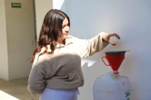 El jueves 28 de noviembre, se visitaron la Escuela Primaria Ramón Green y la Universidad UDC, en Cabo San Lucas, donde se recolectaron más de 46 litros de aceite. Durante estas visitas, se explicó a los estudiantes el proceso paso a paso para elaborar jabones artesanales, destacando los materiales necesarios, así como las medidas de seguridad e higiene para la manipulación de los elementos involucrados.