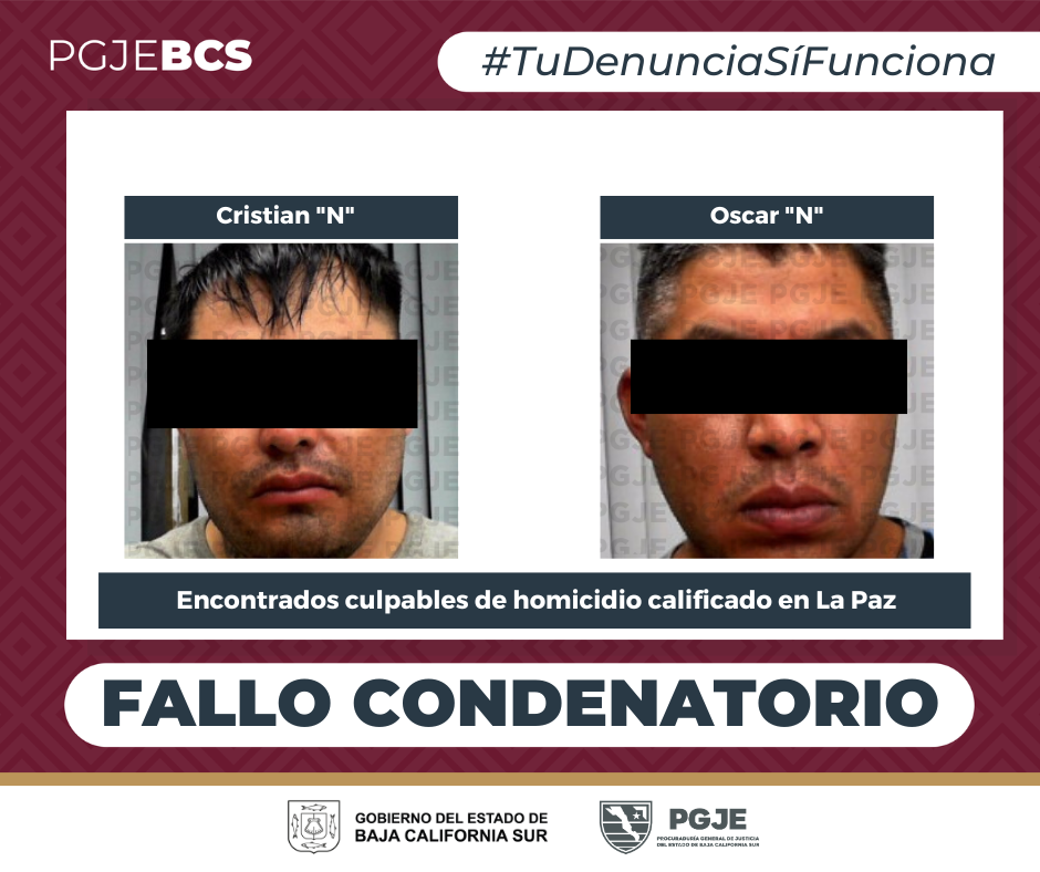 En la audiencia de juicio oral que se celebró el jueves 22 de mayo del año en curso, la Procuraduría General de Justicia del Estado (PGJE), presentó las pruebas suficientes y necesarias para que el Tribunal Colegiado de Enjuiciamiento dictara fallo condenatorio, por unanimidad, en contra de Cristian Ulises N y OscarN.