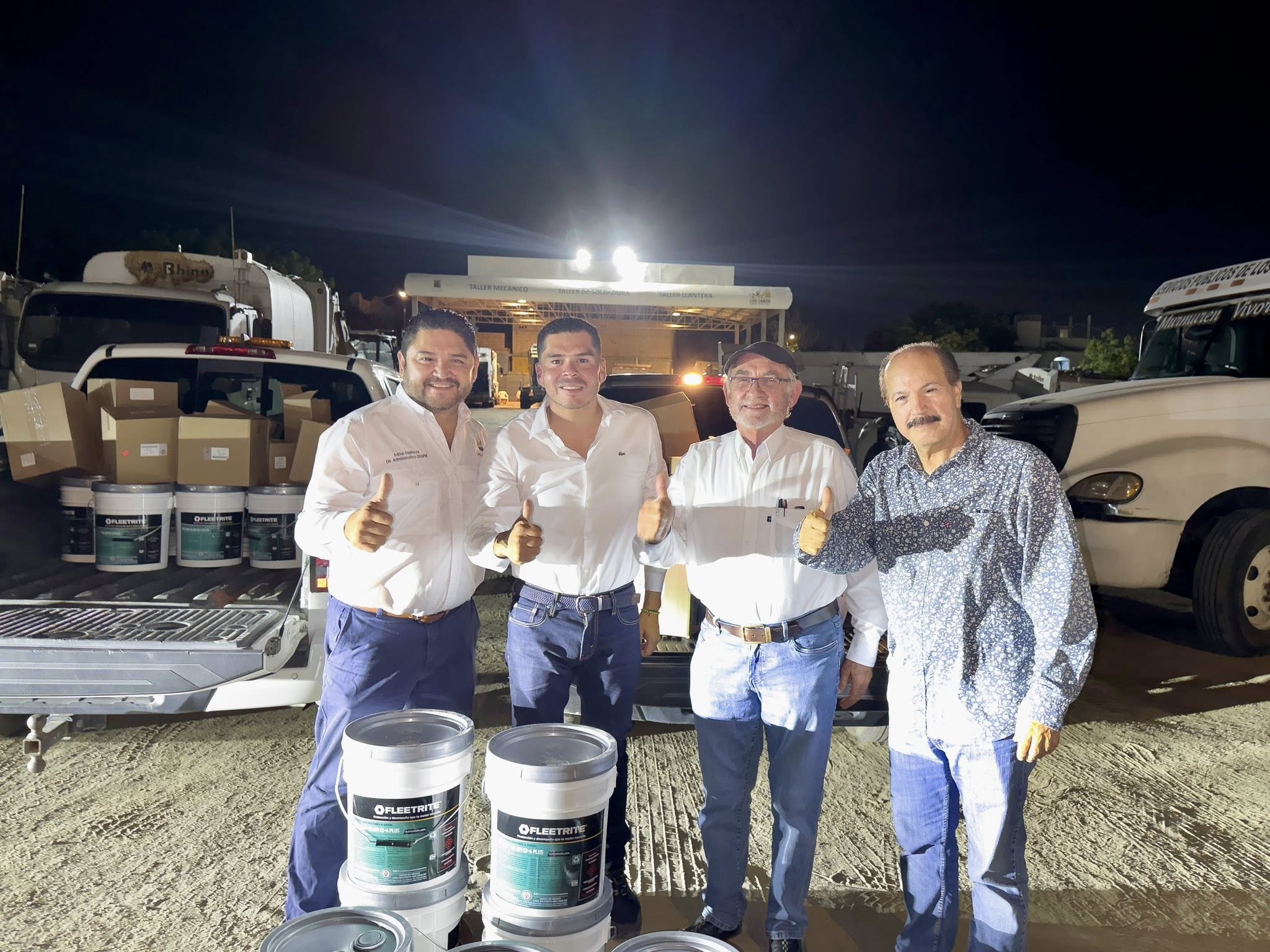 Estos insumos los recibieron el director Administrativo de Servicios Públicos de Los Cabos Adrián Espinoza y el coordinador de Servicios Públicos en San Lucas Roberto Sandoval Montaño, para fortalecer la operación y brindar un mejor servicio de recolección de residuos a las familias.