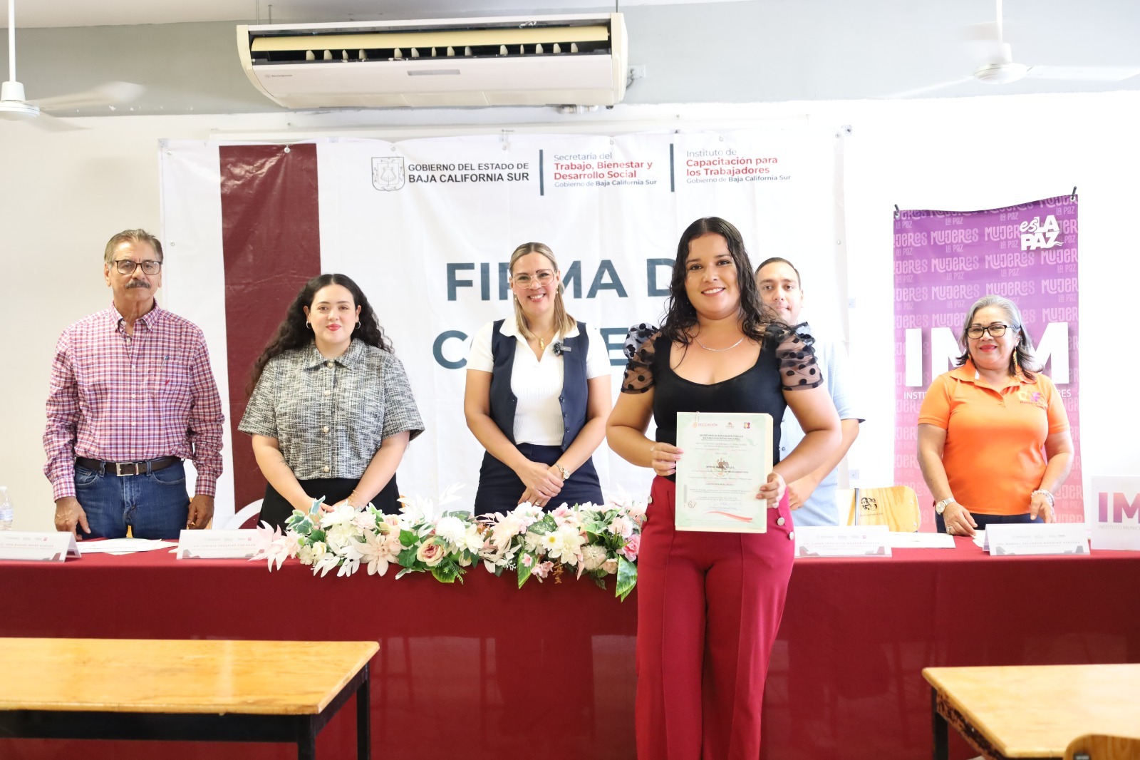 Con el compromiso de impulsar el desarrollo de habilidades y competencias laborales de las mujeres sudcalifornianas, el Instituto de Capacitación para los Trabajadores del Estado de Baja California Sur (ICATEBCS) y el Instituto Municipal de las Mujeres (IMM) de La Paz, firmaron un convenio de colaboración, informó la directora general, Cinthya Fátima Montufas Chávez.