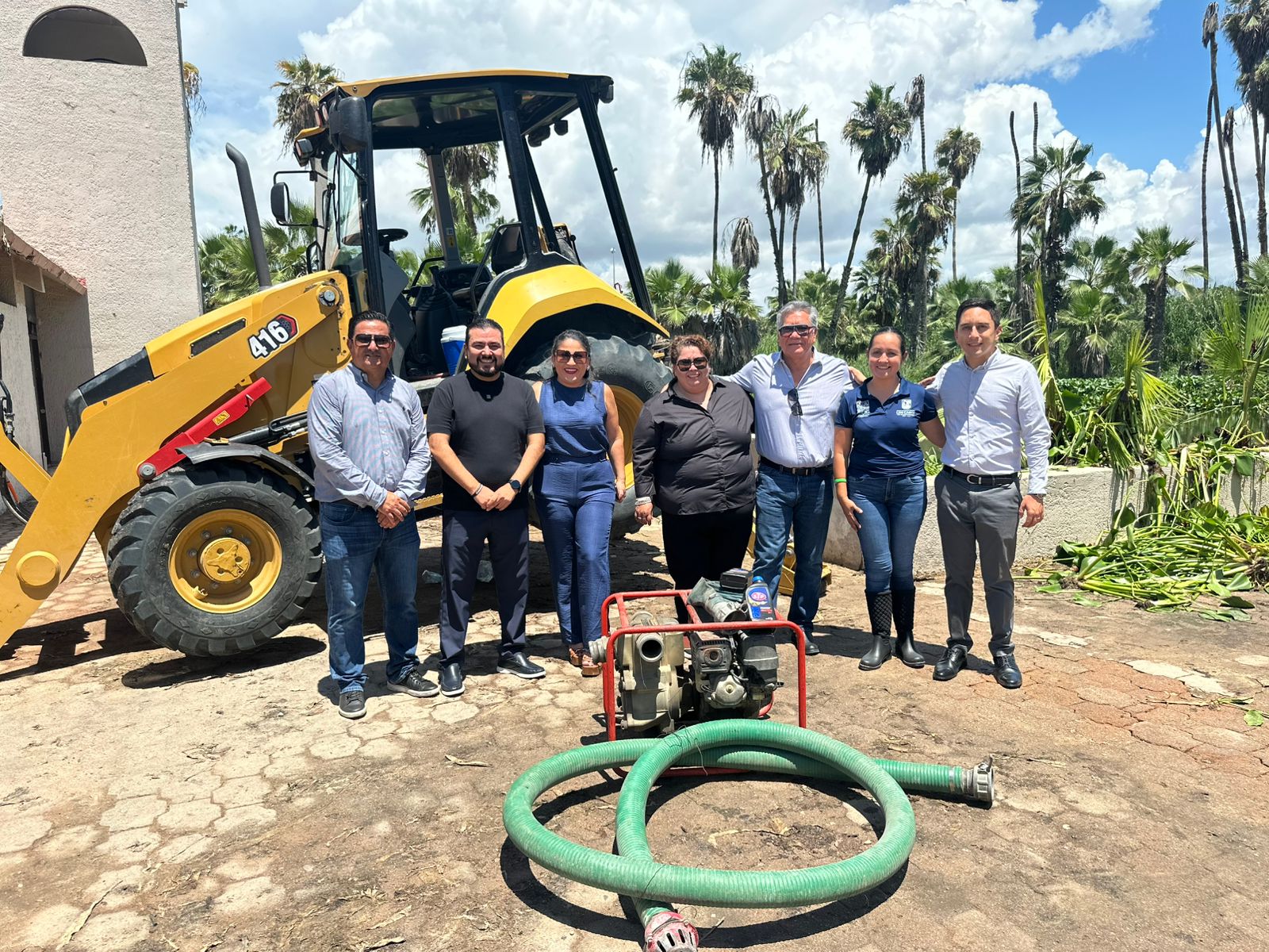 “Hicimos entrega de una motobomba y combustible a la directora de Ecologia y Medio Ambiente, Natali Cruz Ocampo y al director municipal de Recursos Naturales y Vida Silvestre, Jorge López Espinoza, para seguir trabajando en la extracción del lirio del espejo de agua; aunado a esto, vamos a estar sumando con más apoyos como son líquido de hidratación para las y los compañeros que están trabajando en la zona, además de unos kayak para agilizar las actividades de limpieza.”, expresó la IV regidora.