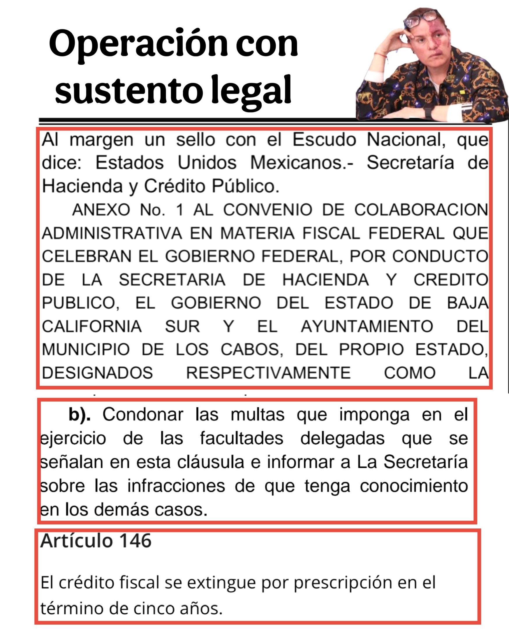 Es de crucial importancia señalar de la misma forma, que la actual administración encontró a su llegada en septiembre del 2024, según palabras del alcalde Christian Agúndez, » Un desastre administrativo”, lo que devino en más de 100 denuncias interpuestas ante la Contraloria municipal, además de procesos penales en contra de varios ex funcionarios ante la fiscalía anticorrupción de BCS, incluidos un ex tesorero, ex síndico e incluso el expresidente municipal «Oscar N”, por tal razón y en virtud de las facultades legales con las que cuenta el ayuntamiento de Los Cabos, condonó el pago de las multas, facultad otorgada al ayuntamiento de Los Cabos según el convenio de Colaboración Administrativa en materia Fiscal Federal signado entre el Gobierno Federal por conducto de la secretaría de Hacienda y Crédito Público y el Gobierno del Estado de Baja California Sur y el Ayuntamiento de Los Cabos.