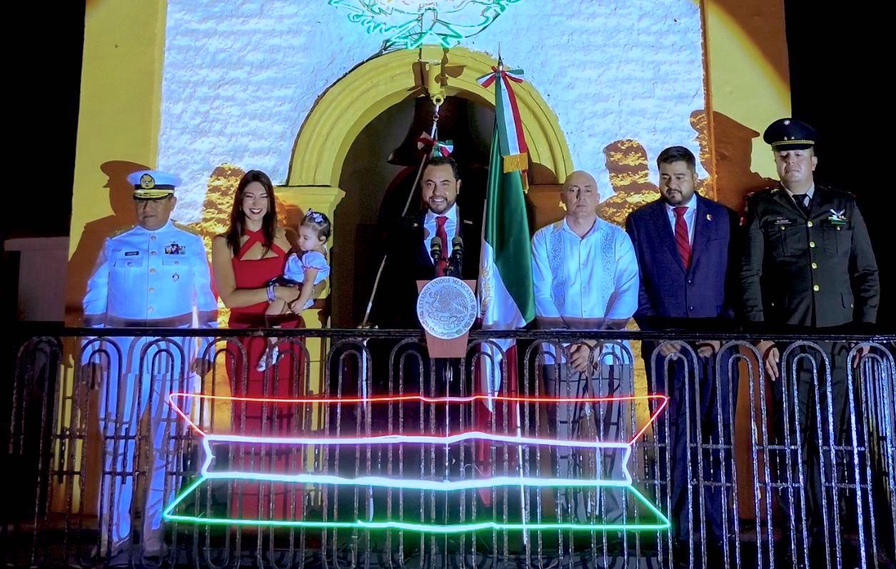 Los Cabos, Baja California Sur.- Cientos de familias celebraron el 215° Aniversario de la Independencia de México, en una ceremonia solemne encabezada por el alcalde de Los Cabos, Christian Agúndez Gómez, quien desde el balcón del Palacio Municipal en San José del Cabo, en compañía de la presidenta honoraria del Sistema DIF Los Cabos Sol Delgado Moreno, sus hijas y autioridades de los 3 niveles de Gobierno, recordó a los héroes y heroínas que dieron patria a la nación, al grito de «Viva México».