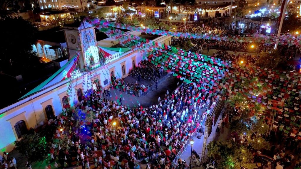 En el entorno del palacio municipal, familias completas se sumaron al evento y tras la ceremonia protocolar se encendieron fuegos artificiales al ritmo de la música tradicional mexicana. La población abarrotó las calles de San José del Cabo desde temprana hora, recorriendo el centro histórico adornado con luminarias y detalles alusivos.