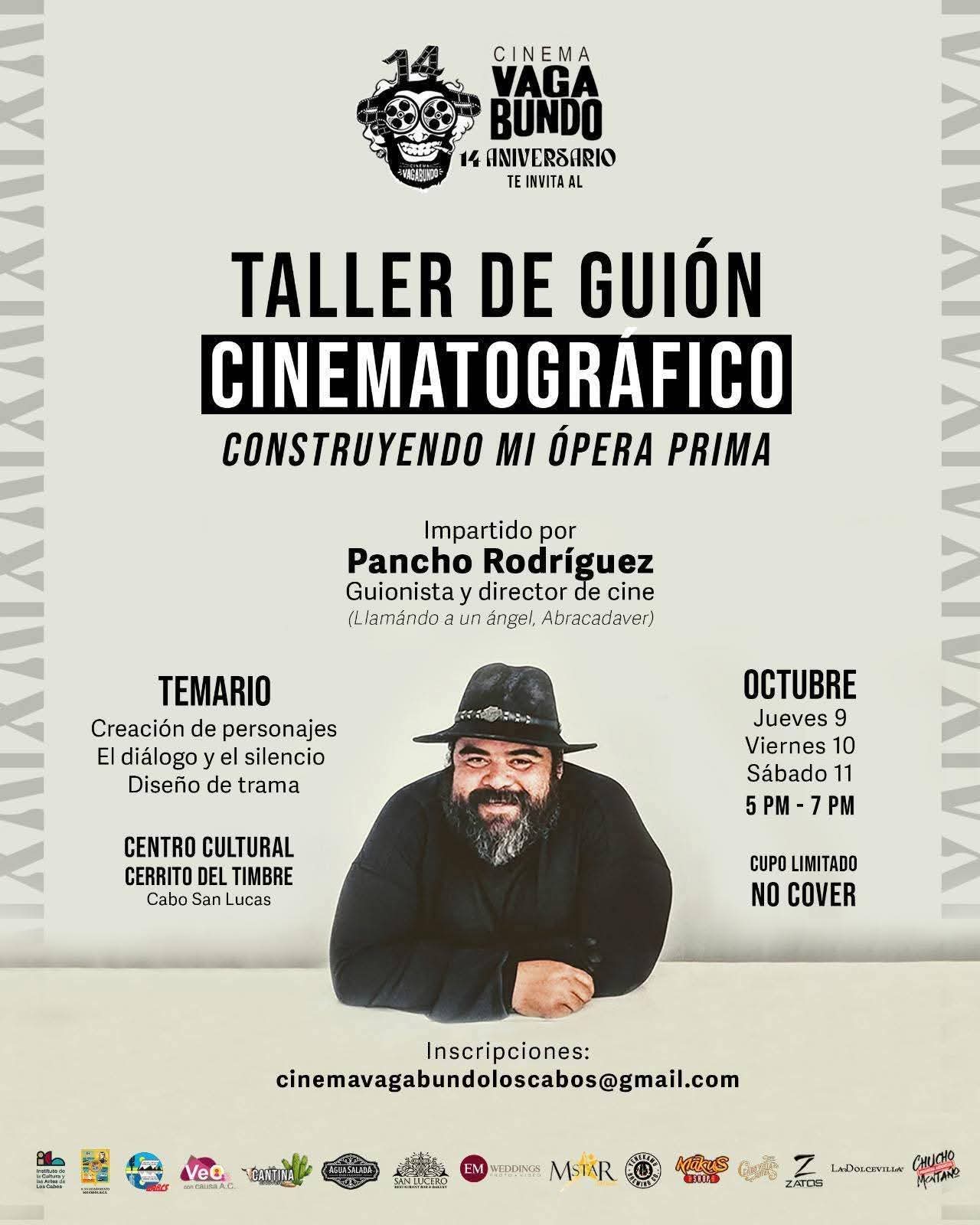 Asimismo, del 09 al 11 de octubre se llevará a cabo el taller de guion cinematográfico “Construyendo mi Ópera Prima”, impartido por el guionista y director Francisco Rodríguez, quien abordará temas como la creación de personajes, el uso del diálogo y el silencio, así como el diseño dramático. El taller se realizará también en el Cerrito del Timbre y será de acceso gratuito.