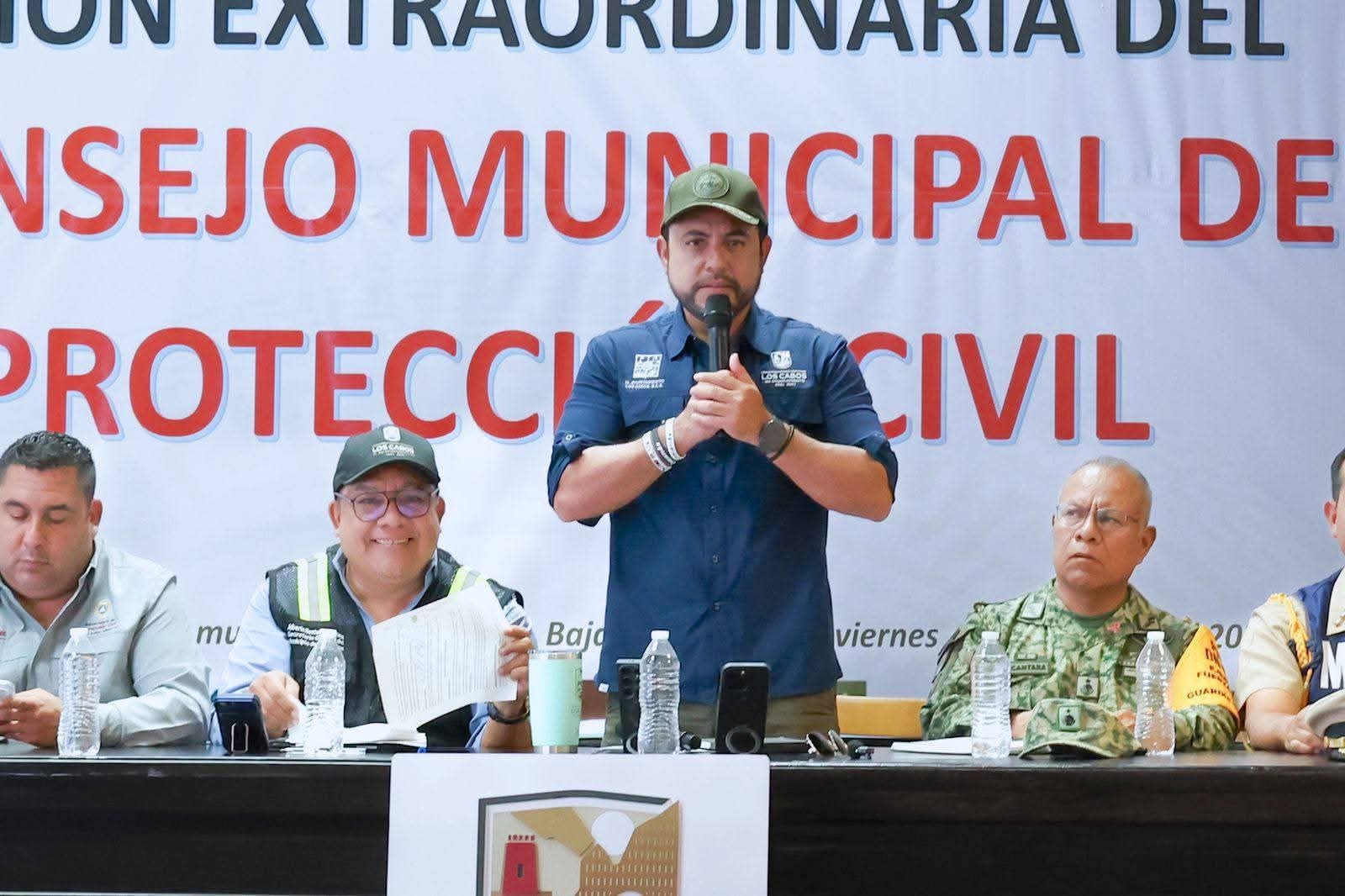 Los Cabos, Baja California Sur 11 de Octubre del 2025.- Durante la décimo primera sesión extraordinaria del Consejo Municipal de Protección Civil, encabezada por el alcalde Christian Agúndez Gómez, se reafirmó la coordinación entre las dependencias municipales, estatales y federales que integran el Consejo, con el objetivo de mantener las acciones preventivas y de atención ante la ahora depresión tropical “Raymond”, el cual ha disminuido su intensidad, aunque persiste el pronóstico de lluvias intensas en la zona sur del estado.