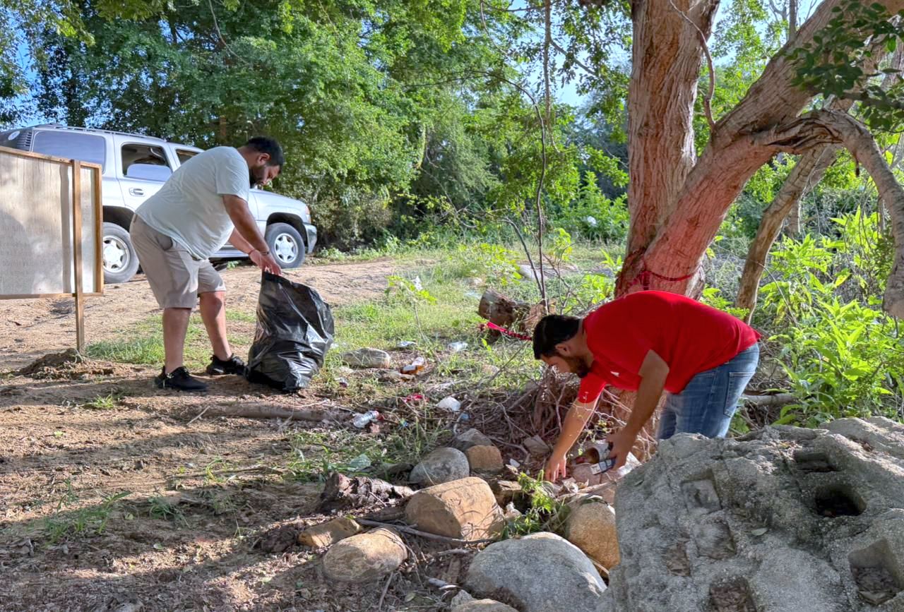 Los Cabos, Baja California Sur.- Como una iniciativa organizada por la coordinación de Ecología y Medio Ambiente a cargo de Gilberto García Lucero, realizaron labores de limpieza junto a la delegada municipal de Miraflores, María Aremy García García.