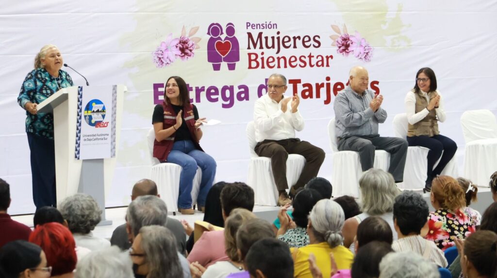 El gobernador del estado, Víctor Manuel Castro Cosío, encabezó este miércoles, junto a Dhipna Yanssen Weichselbaum, delegada de Programas para el Desarrollo en Baja California Sur, la primera entrega de más de 300 tarjetas de la Pensión Mujeres Bienestar, dirigidas a mujeres de entre 60 y 64 años.