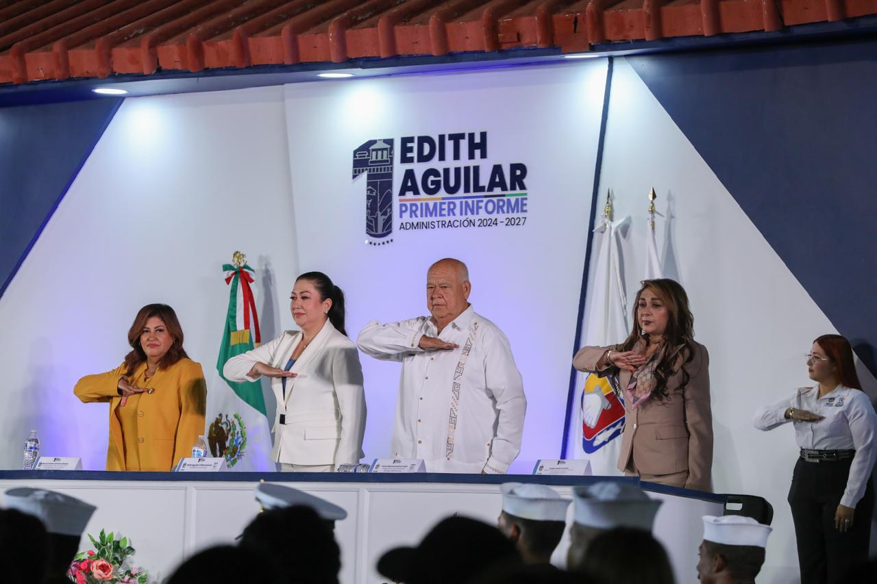 Por su parte, Edith Aguilar Villavicencio agradeció el respaldo del Gobierno del Estado, el cual ha hecho posible avanzar en infraestructura urbana y de salud, la rehabilitación de caminos vecinales, el apoyo al sector pesquero, la atención de situaciones de emergencia y el desarrollo de las comunidades rurales.