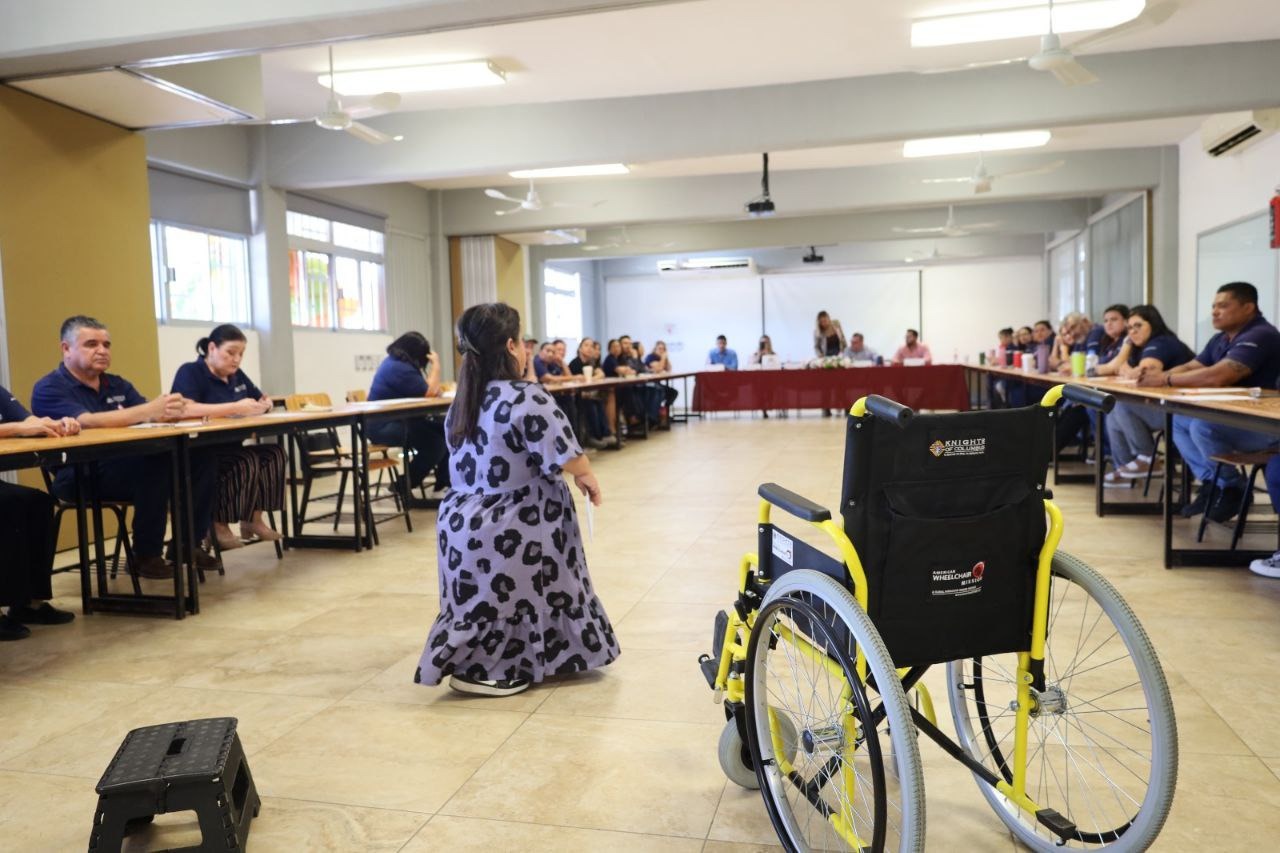 Durante la sesión, las y los participantes realizaron dinámicas de inclusión, sensibilizándose sobre los retos y oportunidades de integrar a personas con discapacidad, experimentando algunas de las barreras físicas y de comunicación que enfrentan en el entorno laboral y personal.