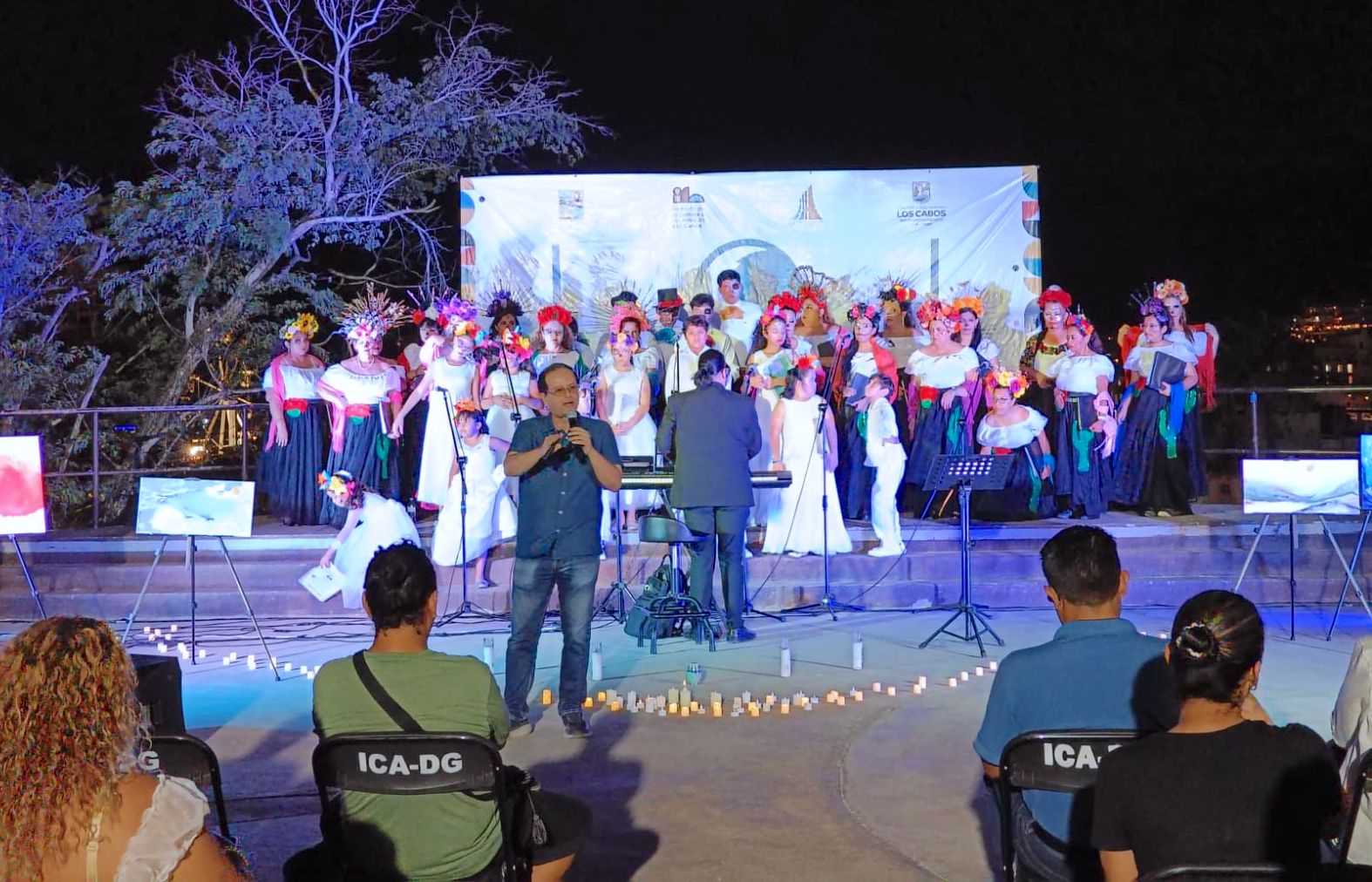 El evento contó con la participación del Coro Polifónico de Los Cabos, que ofreció un programa musical bajo la luz de la luna llena, generando un ambiente propicio para la reflexión y el disfrute cultural. Asimismo, se presentó la exposición de la artista plástica Rana Mendoza, cuya obra destacó por su originalidad, técnica y riqueza visual.