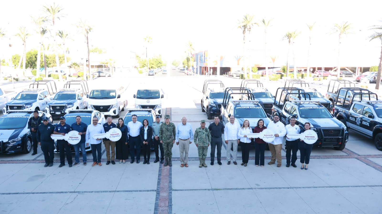 La entrega consistió en 2 vehículos para Loreto; 7 pick-up y 1 sedán para Comondú; y 3 pick-up, 2 sedanes y 2 camionetas para Mulegé, unidades que permitirán reforzar la labor de prevención del delito en cada municipio.