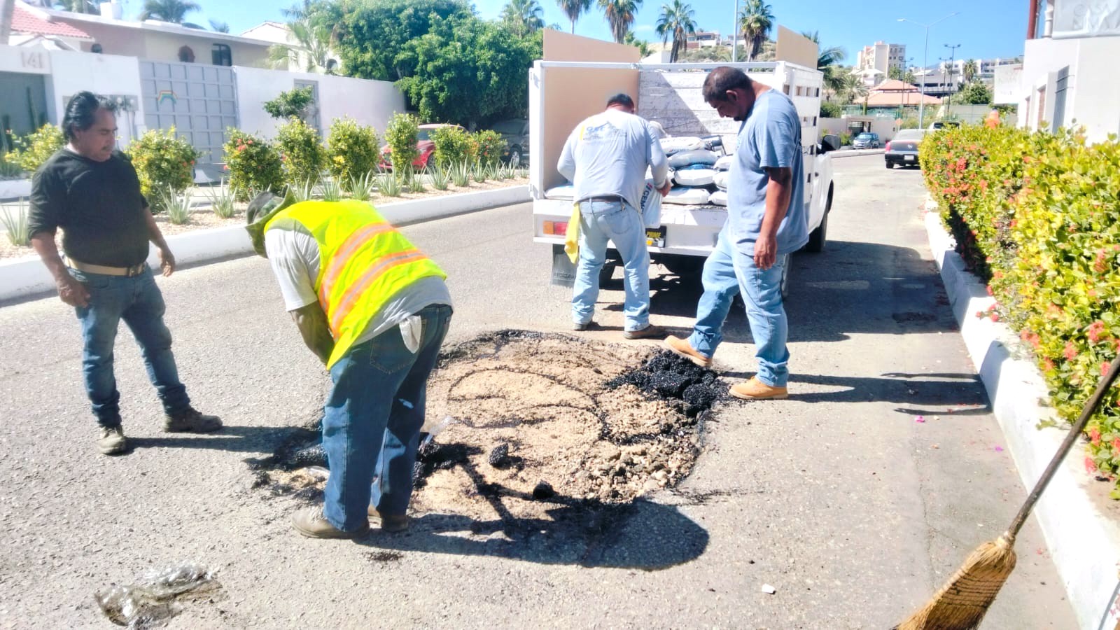 Los Cabos, Baja California Sur.- El XV Ayuntamiento de Los Cabos, a través de la Dirección General de Obras Públicas mantiene de manera continua los trabajos de rehabilitación vial mediante el programa “Caza Baches”, con el objetivo de mejorar las condiciones de movilidad en diversas colonias del municipio.