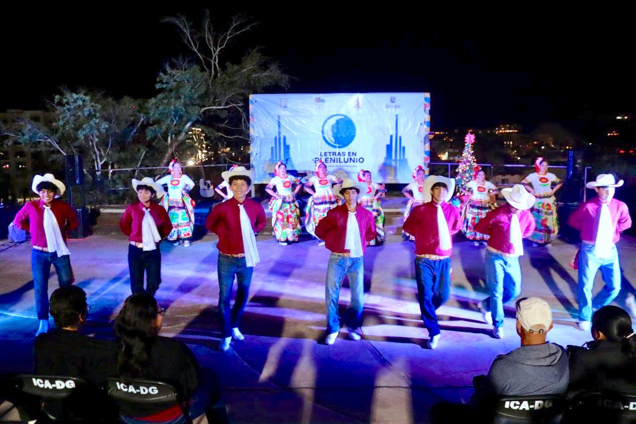 Los Cabos, Baja California Sur.- El XV Ayuntamiento de Los Cabos, a través del Instituto de la Cultura y las Artes (ICA) y en coordinación con la Casa de Cultura “Profa. Nieves Trasviña de Ceseña”, llevó a cabo la última edición del año del programa permanente “Letras en Plenilunio, ecos de luna”, en su versión especial navideña. La actividad tuvo como escenario la explanada del Cerrito del Timbre, en Cabo San Lucas, donde familias, visitantes y amantes del arte se reunieron para disfrutar de una velada cultural bajo la luna llena.