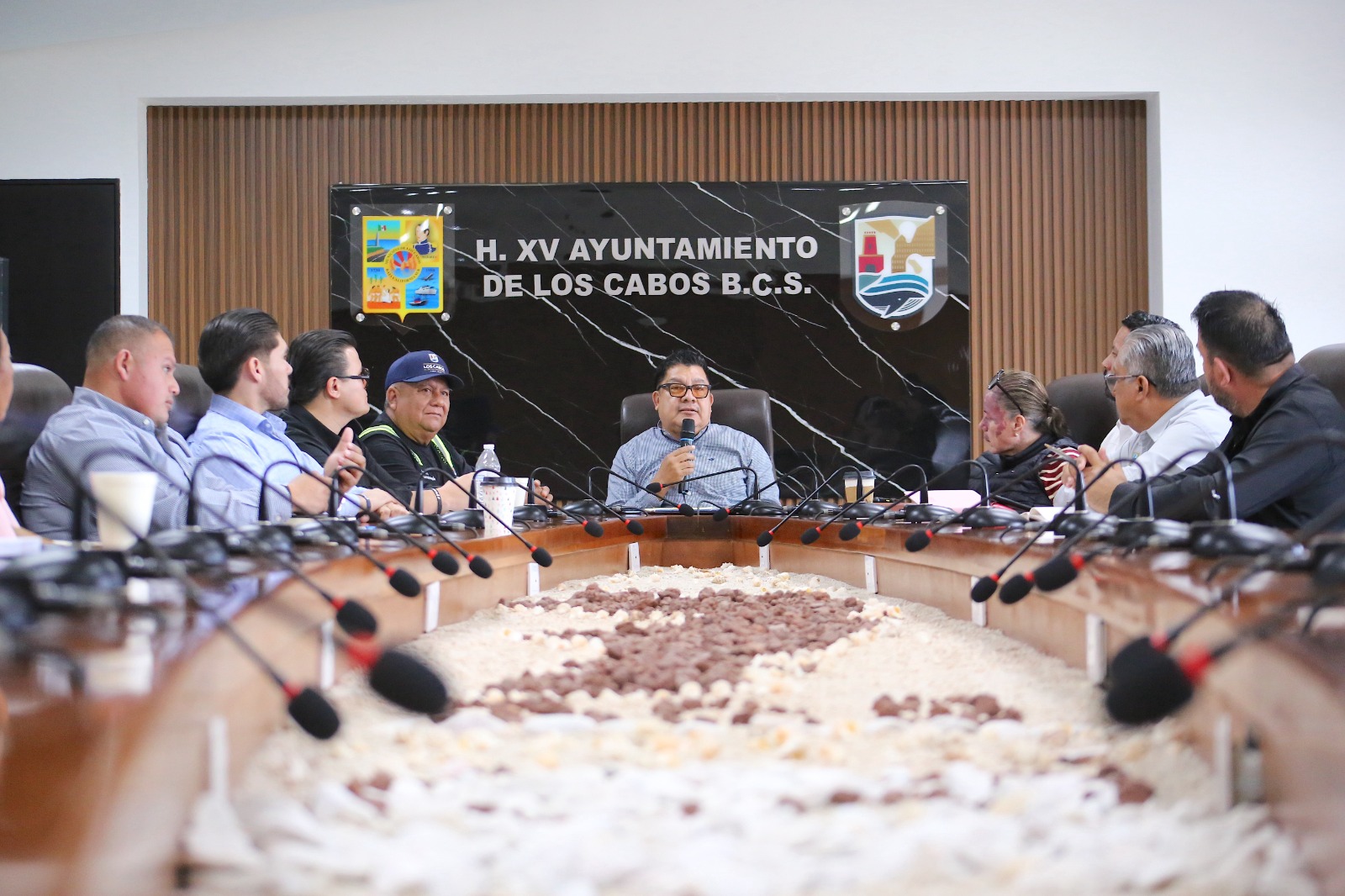 Los Cabos, Baja California Sur.– Como parte del seguimiento a las acciones de ordenamiento y regularización del tianguis ubicado en la colonia Las Palmas, en Cabo San Lucas, el secretario general del XV Ayuntamiento de Los Cabos, Alberto Rentería Santana encabezó una mesa de trabajo con representantes de este espacio comercial, en la que se establecieron acuerdos y avances.